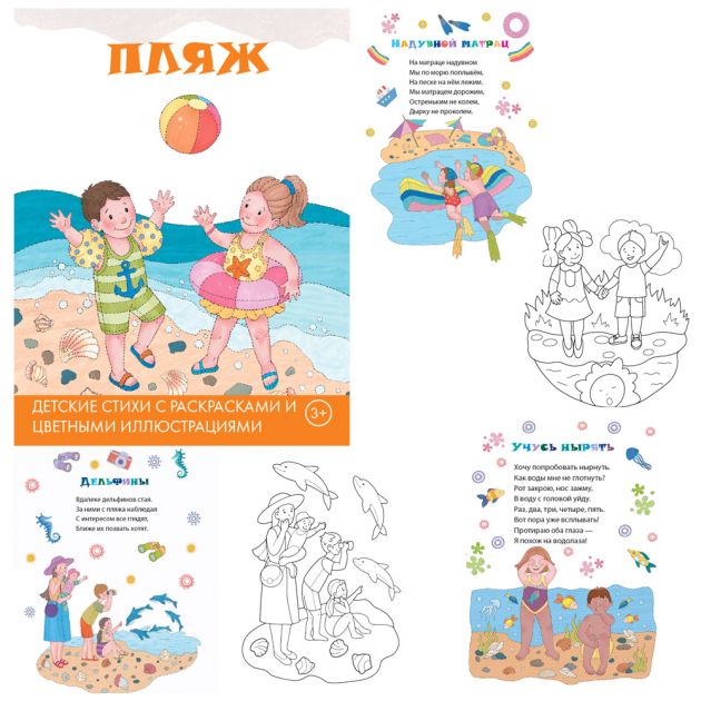 Купить игрушку книжка-раскраска со стихами "Пляж" 16 стр. Автор: В.В.Шаповалов