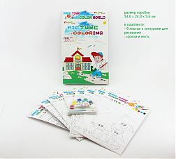 Купить игрушку раскраска акварельная (в коробке 8 листов с контурами, краски, кисть) акция скидка 70%